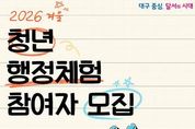 [ 신경북일보 ] 대구 달서구는 12월 8일부터 12월 17일까지 '2026년 겨울 청년 행정체험' 참여자 40명을 모집한다. 기존 ‘대학생 행정인턴’에서 미취업청년까지 대상 범위를 확대해 개편한 첫 사업이다. 달서구는 내년부터 대학생만 참여 가능했던 기존 인턴제를 '청년 행정체험사업'으로 전면 확대·개편하여 더 많은 청년들이 행정 현장을 경험할 수 있도록 했다. 이 사업은 행정 실무 경험 제공을 통한 취업 경쟁력 강화를 목표로 하며, 특히 스마트 행정·디지털 기반 신사업 등 달서구의 혁신 행정을 실제 현장에서 체험할 수 있는 것이 특징이다. 모집 대상은 공고일 기준 달서구에 주민등록이 되어 있는 19세 이상 34세 이하의 미취업청년 및 대학생이며, 총 40명을 선발한다. 분야별 선발 규모는 ▲ 일반선발 24명 ▲ 우선선발(취약계층) 8명 ▲ 특별선발 8명이다. 지원은 모집 기간 내 달서구청 홈페이지에서 온라인으로 신청하면 되며, 선발은 12월 22일 공개 전산추첨 방식으로 진행된다. 선발된 참여자는 2026년 1월 8일부터 2월 6일까지 달서디지털체험센터를 포