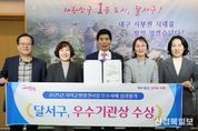 [ 신경북일보 ] 대구 달서구는 20일, 상인3동 도시재생사업이 ‘2025년 균형발전사업 우수사례 시상식’에서 자율계정 부문 우수사례 지자체로 선정돼 기관상을 수상했다. 지방시대위원회가 주최하는 이번 시상식은 지역 균형발전 우수 모델을 발굴·확산하기 위해 각 부처 추천사업을 대상으로 서면평가, 현장조사, 최종 심의 등을 거쳐 대상자를 선정했다. 상인3동 도시재생사업 ‘골목ON: 다시 켜는 동네 이야기’는 낡은 공간을 새로운 문화와 주민 공동체 활동의 장으로 재구성해 주민들이 직접 체감할 수 있는 생활환경 개선과 지역 활성화를 이끌어냈다. 복합문화센터, 스마트팜, 주민 주도의 축제, 안심골목 조성 등 다양한 주민 참여 활동을 통해 도시 활력을 높인 점이 높은 평가를 받으며 달서구는 우수 지자체로 선정됐다. 특히 ‘달비골 복합문화센터’는 행정·복지·문화·도시농업 기능을 융합한 복합청사로 자리 잡아 주민들의 소통 공간 역할을 하고 있으며, 복합청사 내 ‘달서 상인스마트팜’은 대구 최대 규모 도심형 스마트팜으로 미래 도시농업 모델을 제시하며 안전한 먹거리 제공 및 교육 공간으로 활용되고 있다.
