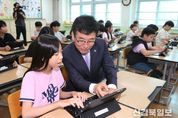 [ 신경북일보 ] 충청북도교육청은 15일, 분평초등학교에서 새로운 기능을 탑재한 다채움 2.0 참관 수업을 가졌다. 이날 선보인 새로운 기능은 다채움 2.0 채움클래스와 채움모니터였다. 채움클래스는 교사, 학생 등이 교수‧학습 기능을 비롯해 체험활동, 동아리, 업무/소통을 위한 다양한 기능을 지원하고 있으며, 채움모니터는 학생과 교사가 함께 쌍방향으로 함께 소통을 하는 기능이다. 이번 행사에는 윤건영 교육감을 비롯해 충북교육청 관계자, 분평초 교직원 등 20명이 참석했으며, ▲다채움 2.0을 활용한 수업 참관 ▲교육감과 학생 간 소통 ▲교사들과의 현장 소통 간담회 순으로 진행됐다. 5학년 공개수업(김병규 교사)은 다채움 2.0 채움클래스 수업 기능과 채움모니터를 연동한 것으로 태블릿 PC와 웹디자인 툴을 이용한 미술수업이 이루어지며, 학생들의 활동 과정을 실시간으로 확인하며 즉각적으로 코칭하는 모습이 눈길을 끌었다. 이어, 6학년 공개수업(박현 교사)에서는 사회 수업의 마무리 단계에서 채움클래스의 평가 기능을 활용하여 학생들의 이해도를 즉시 확인하고, 결과에 따라 맞춤형 피드백이 이루어졌다. &nb