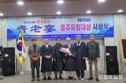 [ 신경북일보 ] 영주시는 지난 24일 영주축협한우프라자 3층 대강당에서 열린 ‘2025년 영주향교 기로연’와 함께 ‘2025년 제1회 영주 유림대상’ 시상식을 개최했다. ‘영주 유림대상’은 선조로부터 이어온 유교정신과 선비정신의 보존·계승에 현저한 공로가 있는 인물 또는 단체를 선정해 시상하는 행사로, 올해 처음 시행돼 더욱 뜻깊은 의미를 지닌다. 이날 행사에는 지역 유림과 시민 등 120여 명이 참석해 첫 수상자의 탄생을 함께 축하했다. 올해 유림대상에는 ‘서산(曙山) 송홍준(95세)’ 영주향교 원로고문이 선정됐다. 송 원로고문은 지역 유림을 대표하는 원로이자 한학자로, 1978년 영주향교 장의로 활동을 시작해 47년간 다양한 직책을 맡아 향사의례 체계 확립과 유교문화 발전에 크게 기여했다. 또한 이산서원 복설추진위원회 부위원장 및 고문, 소수서원 원장, 제민루보존회 도유사 등을 역임하며 지역 문화유산 보존 활동에도 중심적인 역할을 수행했다. 1996년부터 2008년까지는 영주향교 명륜교실, 영주시평생학습센터, 영주문화원 한문교실에서 강의를 통해 200여 명의 후학을 양성했으며, 현재까지도 명륜