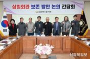 [ 신경북일보 ] 울산 중구의회가 삼일회관 보존을 위해 B-04 재개발사업의 지구단위계획 변경 가능성을 논의하는 간담회를 마련했다. 중구의회는 26일 강혜순·안영호 의원 주관으로 의회 2층 의원회의실에서 ‘삼일회관 보존 방안 논의 간담회’를 가졌다. 이날 간담회에는 대한민국건국회 울산지부(회장 이황사)을 비롯해 광복회 울산지부(회장 남진석), 울산향토문화연구회, 울산민주화운동기념계승사업회, 중구 B-04구역 주택재개발사업조합(조합장 지수형), 관계 공무원 등이 참석한 가운데 진행됐다. 중구 북정동에 위치한 삼일회관은 지난 1921년 울산청년회관으로 건립돼 항일운동의 거점이자 청년·시민 계몽운동의 거점으로 역사적 상징성을 품은 공간이다. 하지만 중구 B-04 주택재개발사업부지 내 위치한 탓에 철거 위기에 놓여있다. 이번 간담회에서는 역사적 상징성을 담은 삼일회관 보존 필요성에 대한 각 시민단체의 의견이 개진됐으며 재개발사업 과정에서 공존하는 방안이 논의됐다. 특히 최근 B-04 재개발사업 일부 현장에서 울산읍성과 관련 문화재 발굴에 따른 지구단위계획 변경 상황이 새롭게 발생하