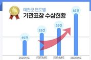 [ 신경북일보 ] 예천군은 2025년 한 해 동안 중앙·광역·민간 평가 전반에서 우수한 성과를 거두며 총 66건의 기관 표창을 수상했다고 밝혔다. 이는 2022년 49건, 2023년 52건, 2024년 55건에 이어 4년 연속 증가한 실적으로, 매년 자체 최고 기록을 경신하며 꾸준한 상승 곡선을 그리고 있다. 특히 예천군은 전통적인 농촌행정 중심 구조에서 경북도청 신도시 조성에 따른 도시행정 수요까지 동시에 감당해야 하는 이중적 행정 환경 속에서도 성과를 이어가고 있다는 점에서 의미가 크다. 농업·농촌 분야의 전문성과 함께 도시 기반 행정, 복지·안전, 문화·환경 정책까지 행정 영역이 확장되는 과정에서도 군정 전반의 안정성과 실행력이 대외적으로 인정받고 있다는 평가다. 2025년 수상 내역을 살펴보면 중앙 단위 평가 20건, 광역 단위 평가 42건, 민간 평가 4건으로 고른 분포를 보였으며, 이를 통해 확보한 상 사업비는 590백만 원, 시상금은 130백만 원에 달한다. 주요 수상 실적으로는 ▲2025년 전국민 마음투자 지원사업 우수기관 ▲경상북도 지역개발사업 추진실적 평가 최우수 ▲경
