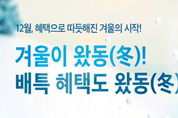 [ 신경북일보 ] 경기도와 경기도주식회사가 공동 운영하는 경기도 공공배달앱 배달특급이 겨울을 맞아 12월 한 달간 ‘겨울이왔동(冬)’ 소비자 할인 프로모션을 진행한다. ‘겨울이왔동(冬)’ 소비자 할인 이벤트는 ‘통 큰 세일’ 프로모션 종료 등으로 아쉬움이 남는 소비자들의 편익을 증대하기 위해 마련했다. 배달 특급 전체 회원, 전체 서비스 지역을 대상으로 1만2천원 주문에 사용가능한 3천원 할인 쿠폰을 예산 소진시까지 1일 1인 1회 지급한다. 한편 배달특급의 모든 이벤트는 해당 상단 배너 기능을 통해 확인 가능하며, 지역에 따라 할인 조건과 금액이 달라질 수 있어 사전 확인이 필요하다. [뉴스출처 : 경기도청]