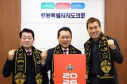 [ 신경북일보 ] 강원특별자치도의회는 2026년 강원FC의 선전과 도내 축구 열기 확산을 위해 ‘시즌권 구매-기부 릴레이’에 동참한다. 강원특별자치도의회 의장 김시성과 김병지 강원FC 대표이사는 1월 14일 도의회 의장 집무실에서 강원FC 시즌권 구매-기부 릴레이를 진행했다. 이번 릴레이를 통해 강원특별자치도의회 명의로 기부된 시즌권은 평소 프로축구를 접하기 어려운 아동과 청소년에게 전달되어 도민 화합과 축구 저변확대에 기여할 것으로 기대된다. 도의회 김시성 의장은 “올 한해도 강원FC가 한 단계 더 도약하고 성장할수 있도록 지속적인 관심을 기울이겠다”며, “강원FC가 도민들에게 화합과 행복을 주는 구단으로 발전하기를 응원한다”고 말했다. [뉴스출처 : 강원도의회]