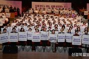 [ 신경북일보 ] 충남도는 9일 도청 문예회관에서 ‘함께 만드는 평등, 함께 성장하는 충남’을 주제로 세계 여성의 날 기념식을 개최했다. 도는 제118주년 세계 여성의 날을 맞아 자유와 인권을 향한 여성의 용기 있는 발걸음을 기억하고 성평등 실현을 위한 연대·협력을 다짐하는 자리로 이번 행사를 마련했다. 김태흠 지사와 , 강임금 충남여성단체협의회장, 여성단체 회원 등 350여 명이 참석한 가운데, 이번 행사는 식전 공연, 기념사, 퍼포먼스, 기념 영상 상영, 결의문 낭독, 축하 공연 등의 순으로 진행했다. 이날 참석자들은 세계 여성의 날 기념 영상을 함께 보고 결의문을 낭독하며 여성 인권 향상과 차별 없는 사회 실현을 위한 실천 의지를 다졌다. 이 자리에서 김 지사는 “내년 말 완공을 준비 중인 여성가족플라자를 여성단체들이 안정적으로 활동하고 정책 역량도 키울 수 있는 실질적 거점으로 키워 나갈 것”이라면서 “저출생 대책이자 여성 친화적 사회를 만들기 위한 풀케어 돌봄정책도 올해 더 내실 있게 추진할 계획”이라고 말했다. 이어 김 지사는 “여성들이 결혼·출산·육아와 돌봄 등을 이유로