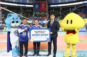 [ 신경북일보 ] 이장우 대전시장은 21일 대전충무체육관에서, 6개월간의 V-리그 대장정에 나서는 연고팀 대전 삼성화재 블루팡스의 승리를 기원하는 시구에 참여했다. 1세트 종료 후에는 삼성화재 블루팡스×꿈돌이 굿즈를 공동 브랜딩을 위한 상호협력 협약을 체결하고, 스포츠마케팅을 확장하기로 했다. [뉴스출처 : 대전시]