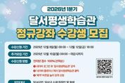 [ 신경북일보 ] 대구 달서구는 오는 12월 8일 오전 9시부터 2026년 1분기 달서평생학습관 정규강좌 수강생을 선착순으로 모집한다. 2026년 1분기 운영 기간은 1월 5일 부터 3월 23일 까지이며, 주민들의 다양한 학습 수요를 반영해 총 11개 분야 70개 과정이 개설된다. 이번 강좌는 ▲어학 ▲미술 ▲음악 ▲생활체육 ▲자격증 취득 과정 등 폭넓은 분야로 구성됐으며, 특히 학습 단계별 수요에 맞춰 일부 강좌는 중급반을 신설해 수준별 학습이 가능하도록 했다. 또한 수강 만족도가 높은 어학 과정은 주 2회로 수업을 확대해 학습 효과를 더욱 높였다. 직장인을 위한 목요일 야간 강좌도 지속 운영되어 학습 접근성이 강화됐다. 수강 신청은 달서구민 누구나 가능하며, 달서구 소재 기업 재직자와 학생도 참여할 수 있다. 접수는 네이버 플레이스를 통해 온라인으로 진행되며, 구체적인 신청 방법은 달서구청 홈페이지 공지사항에서 확인할 수 있다. 달서구는 앞으로도 주민들이 일상에서 배움을 즐기고 자기계발을 실천할 수 있도록 양질의 평생학습 프로그램을 지속 확대해 나갈 계획이다