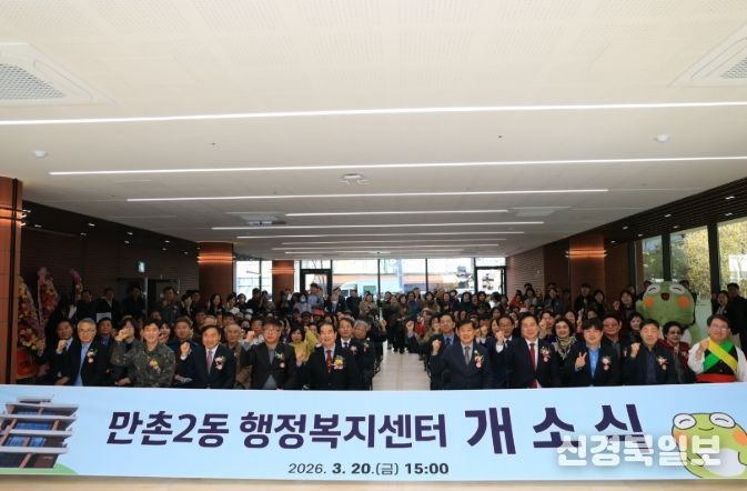 [ 신경북일보 ] 대구 수성구는 만촌2동 행정복지센터의 신축 및 이전을 완료하고, 지난 20일 새로운 청사에서 개소식을 진행했다. 이번 행사는 '사람을 잇는 공간, 함께 여는 미래'라는 슬로건 아래, 주민들과 함께 새로운 시작을 알리고 지역 공동체의 소통을 강화하기 위해 마련됐다.