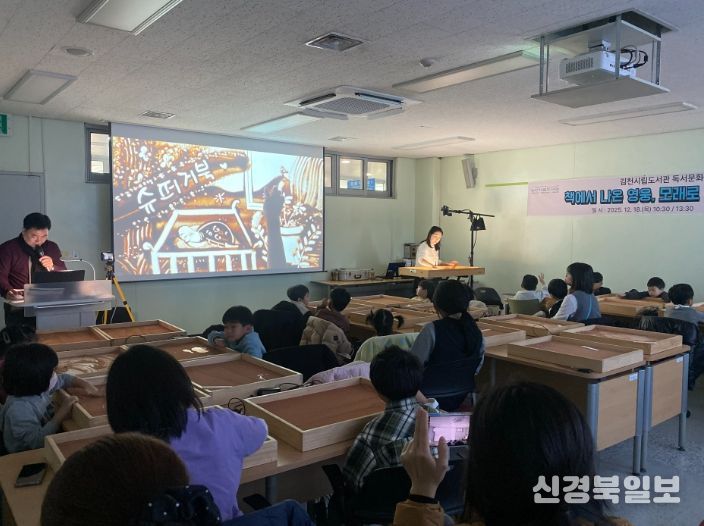 [ 신경북일보 ] 김천시립도서관은 지난 18일 문화 향유 접근성이 낮은 장애 아동을 대상으로 독서 문화 공연 '책에서 나온 영웅, 모래로 만나는 슈퍼거북'을 성황리에 운영했다고 밝혔다.