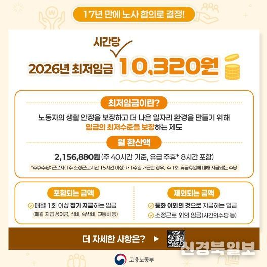 2026년 시간당 최저임금 10,320원