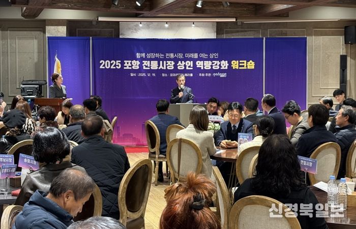 [ 신경북일보 ] 포항시는 지난 19일 포마레웨딩컨벤션에서 서재원 포항시 정무특보, 임주희 포항시의회 경제산업위원장을 비롯해 지역 전통시장 상인회 임원 등 관계자 100여 명이 참석한 가운데 2025년 ‘포항시 전통시장 상인 역량강화 워크숍’을 개최했다.