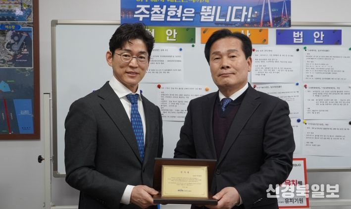 [ 신경북일보 ] 더불어민주당 주철현 국회의원(전남 여수시갑)은 22일 한국화학산업협회로부터 국가기간 산업인 석유화학산업의 위기 극복과 경쟁력 강화를 위한 공로로 감사패를 받았다.