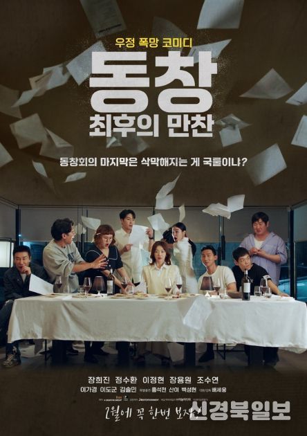 한편, 이번에 공개된 메인 포스터는 마치 레오나르도 다빈치의 명작 ‘최후의 만찬’을 떠올리게 하며 눈길을 사로잡는다. 흩날리는 종이와 함께 놀란 얼굴로 테이블에 둘러앉은 동창들의 모습이 호기심을 자극한다.