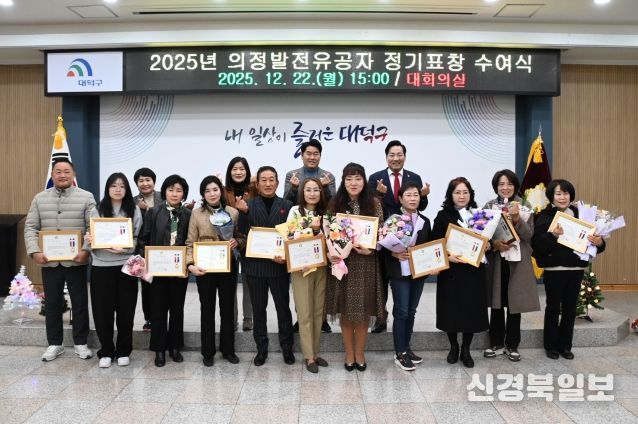[ 신경북일보 ] 대덕구의회는 22일 대덕구청 대회의실에서 ‘2025년 의정 발전 유공 정기표창 시상식’을 진행했다. 이날 시상은 올 한해 투철한 사명감과 남다른 봉사 정신으로 구민의 복리 증진과 의정 발전에 앞장서 온 구민들을 대상으로 이뤄졌다.