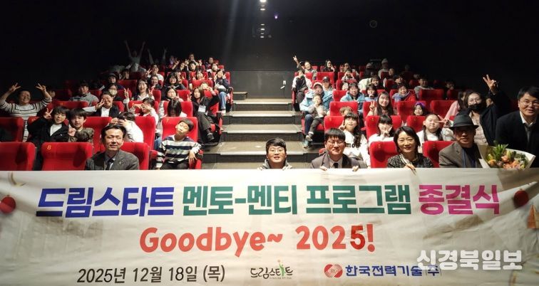 [ 신경북일보 ] 김천시 드림스타트는 지난 18일 율곡동 CGV영화관에서 아동 및 가족, 한국전력기술(주) 재능나누미봉사단 90여 명이 참석한 가운데 2025년 드림스타트 멘토·멘티 프로그램 종결식을 가졌다.