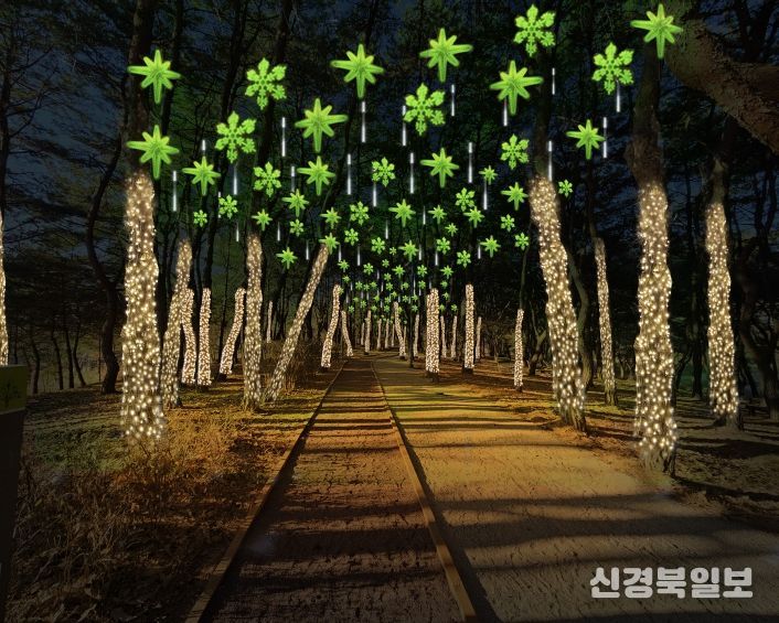 [ 신경북일보 ] 경상북도는 도청 신도시의 대표 녹지 공간인 천년숲이 올겨울 빛으로 새 옷을 입는다. 연말연시를 맞아 황톳길과 산책로 일대에 경관조명이 설치되면서 또 다른 겨울밤 숲의 풍경을 선보인다.