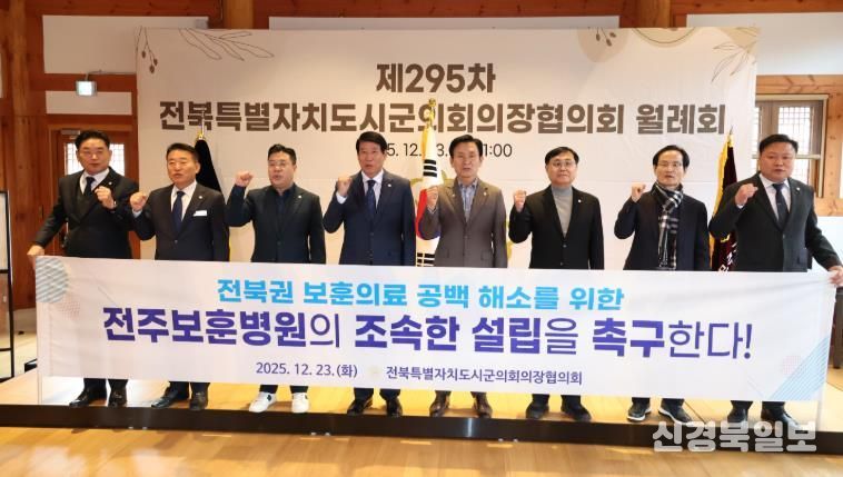 [ 신경북일보 ] 전북특별자치도시군의회의장협의회는 23일 무주군의회에서 열린 제295차 월례회에서 지역 보훈대상자의 건강권 침해와 의료 사각지대 해소를 위한 보훈병원 설립을 촉구했다.