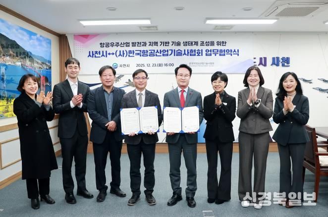[ 신경북일보 ] 사천시는 지난 23일 시청 열린시장실에서 사단법인 한국항공산업기술사협회와 항공우주산업 발전과 지역 기반 기술 생태계 조성을 위한 업무협약(MOU)을 체결했다.