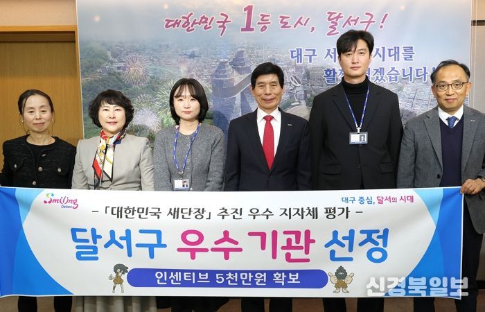 [ 신경북일보 ] 대구 달서구는 행정안전부가 주관한 '대한민국 새단장' 추진 우수 지자체 평가에서 우수기관으로 선정돼 특별교부세 5천만 원을 확보했다.