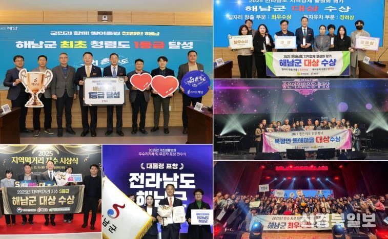 [ 신경북일보 ] 해남군이 2025년 한 해 동안 총 110건의 기관표창을 수상하며 역대 최다 수상 기록을 달성했다.