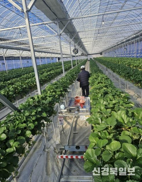 [ 신경북일보 ] 예천군은 농촌 고령화와 인력난 해소를 위해 ‘스마트팜 작업자 추종 운반 로봇’ 시범사업을 풍양면의 ‘원네스 딸기’ 농가에 실시했다.