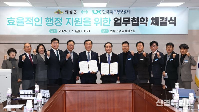 [ 신경북일보 ] 의성군은 9일 군청 본관 2층 영상회의실에서 LX한국국토정보공사(사장 어명소)와 ‘효율적인 행정지원을 위한 업무협약’을 체결했다고 밝혔다.