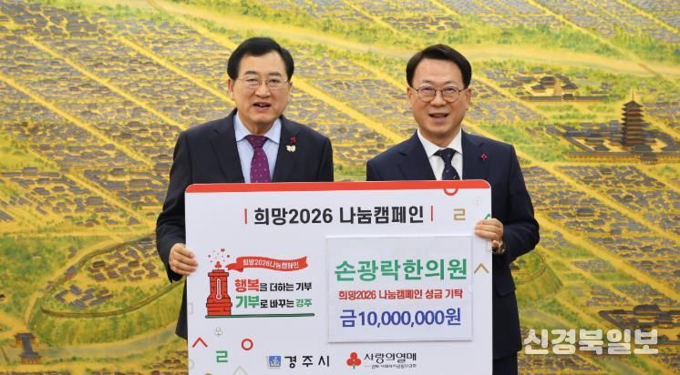 [ 신경북일보 ] 경주시는 14일 시청에서 손광락한의원으로부터 ‘희망2026 나눔캠페인’ 성금 1,000만 원을 기탁받았다고 밝혔다.