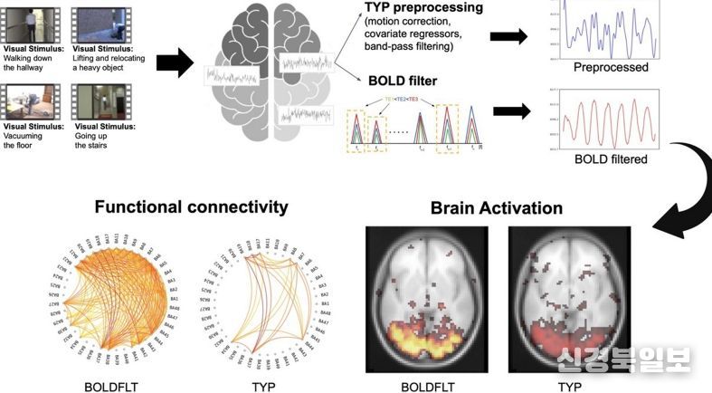 휴지기 fMRI에서 신뢰도 높은 BOLD(blood oxygenation level-dependent) 신호만 추출하던 BOLD-filter 기법을 과제기반 fMRI 전처리에 적용, 유의미한 BOLD 신호를 강조하고 잡음을 줄였다.