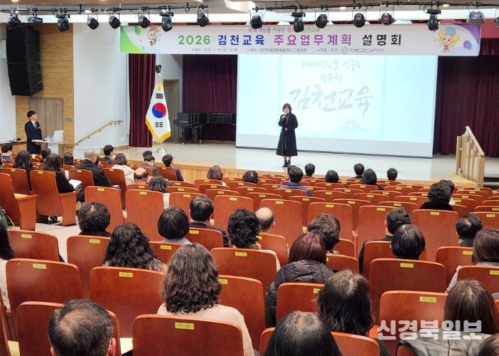 [ 신경북일보 ] 경상북도김천교육지원청은 1월 16일 김천학생문화예술센터 드림마루에서 관내 유‧초‧중‧고‧각종학교 교(원)장 및 학교운영위원장, 학부모 회장 등 150여 명을 초청하여 2026 김천교육 주요업무계획 설명회를 개최했다.