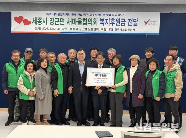 한국가스안전공사는 이날 세종시 장군면 새마을협의회에 복지후원금을 전달했다. 세종시새마을회는 지역 봉사와 생활환경 개선, 주민 지원과 나눔 활동을 꾸준히 이어오고 있다.