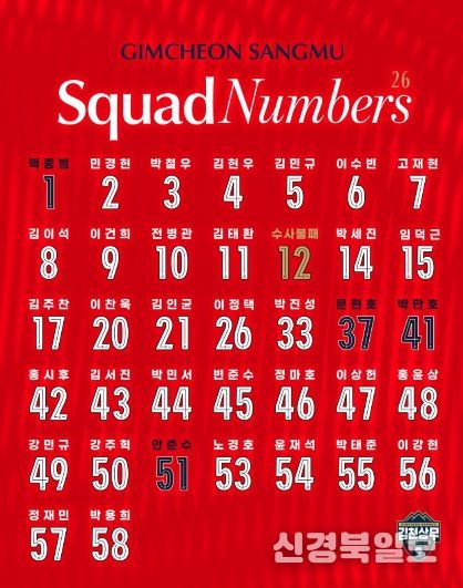 [ 신경북일보 ] 김천상무가 2026시즌 프로선수단 배번을 공개했다.