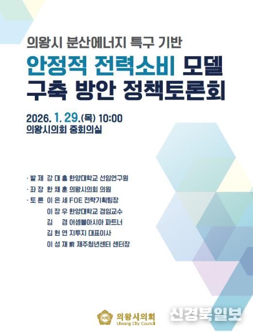 [ 신경북일보 ] 의왕시의회는 오는 29일 오전 10시, 시의회 중회의실에서 '의왕 분산에너지 특구 기반 안정적 전력소비 모델 구축 방안 정책토론회'를 개최한다고 밝혔다.