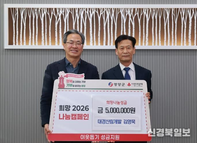 [ 신경북일보 ] 대경산림개발 대표 김영묵(전 농업경제건설국장)은 1월 21일 영양군을 방문해 지역의 어려운 이웃과 희망을 나누고자 성금 500만원을 기부하며 '희망2026나눔캠페인'에 동참했다.