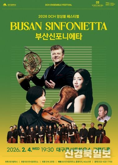 [ 신경북일보 ] 대구콘서트하우스가 주최하는 2026 DCH 앙상블 페스티벌이 오는 2월 4일 저녁 7시 30분, 대구콘서트하우스 그랜드홀에서 부산신포니에타의 개막 공연과 함께 본격적인 막을 올린다.