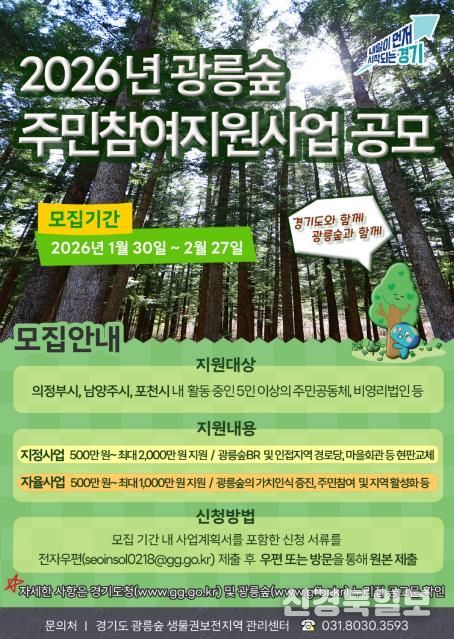 [ 신경북일보 ] 경기도가 광릉숲 생물권보전지역 활성화를 위해 2026년 광릉숲 주민참여지원사업 참여자를 모집한다.
