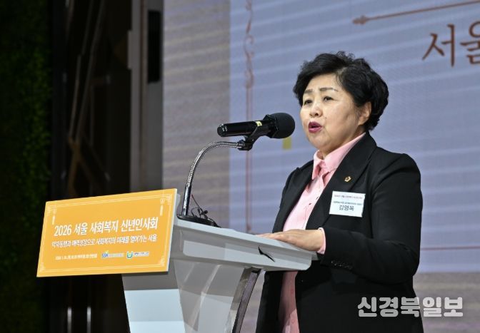 [ 신경북일보 ] 서울특별시의회 보건복지위원회 김영옥 위원장(국민의힘, 광진3)은 1월 29일 오전 10시 30분, 마포구 케이터틀 컨벤션홀에서 열린 '2026 서울 사회복지 신년인사회'에 참석해 사회복지 현장 종사자들에게 새해 인사와 함께 격려의 메시지를 전했다.