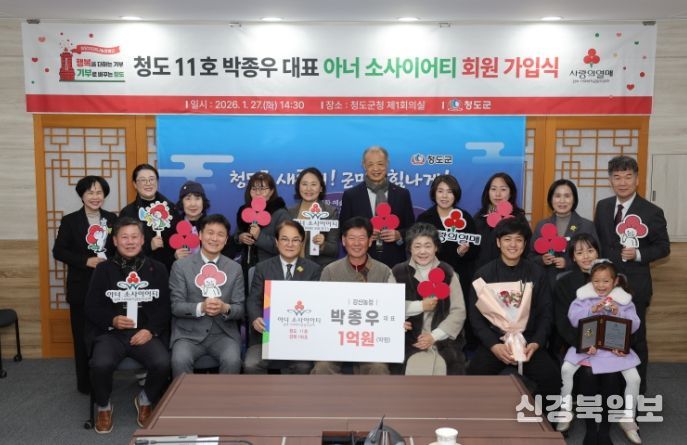 [ 신경북일보 ] 강산농장 박종우 대표는 지난 27일 청도군청에서 아너 소사이어티 회원 가입식을 가졌다.