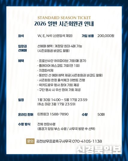 한편, 김천상무의 2026시즌 홈 개막전은 2월 28일 포항스틸러스와의 ‘하나은행 K리그1 2026’ 1R 경기다.
