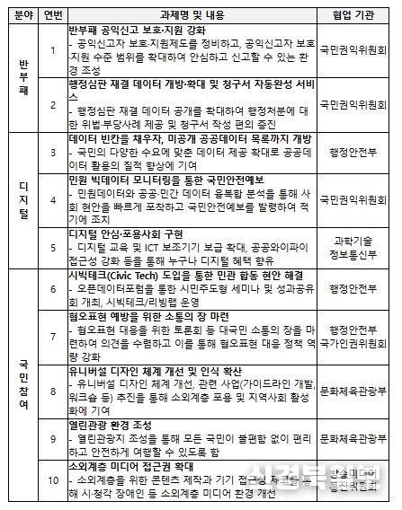 특히, 국민참여를 통한 사회문제 해결, 디지털·AI 기술을 활용한 행정 서비스 개선, 공익신고 보호 강화 등 국민 체감도가 높은 핵심 분야에 역량을 집중한다.