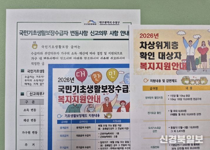[ 신경북일보 ] 대구 수성구는 2026년 기초생활보장제도 개선 및 기준 완화에 발맞춰 복지사각지대를 해소하고 주민 체감도를 높이기 위한 맞춤형 복지사업을 본격 추진한다고 밝혔다.