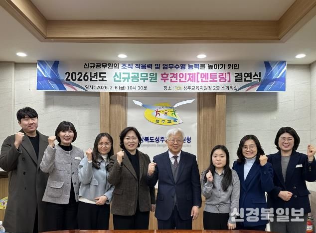 [ 신경북일보 ] 경상북도성주교육지원청은 6일 소회의실에서 2026. 1. 1.자 신규 공무원 1명, 멘토 공무원 2명이 참석하여 신규 공무원의 조직 적응력을 높이고 자신감 있는 공직 생활을 유도하고자 후견인제(멘토링) 결연식과 직무연수를 가졌다.