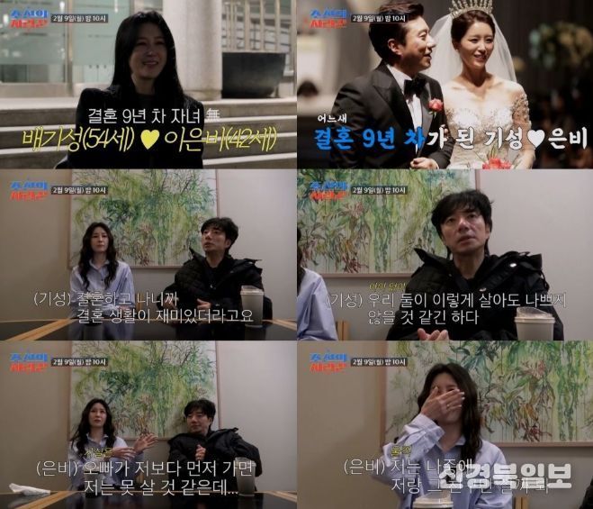 [ 신경북일보 ] TV CHOSUN 극사실주의 다큐 예능 ‘조선의 사랑꾼’에 합류한 '결혼 9년 차' 배기성♥이은비 부부가 서로를 향한 진한 애정으로 감동을 자아낸다.