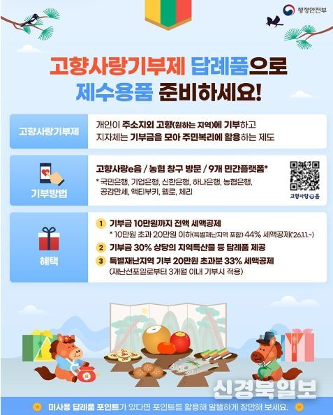 [ 신경북일보 ] 고향사랑기부제 답례품으로 제수용품 준비하세요!
