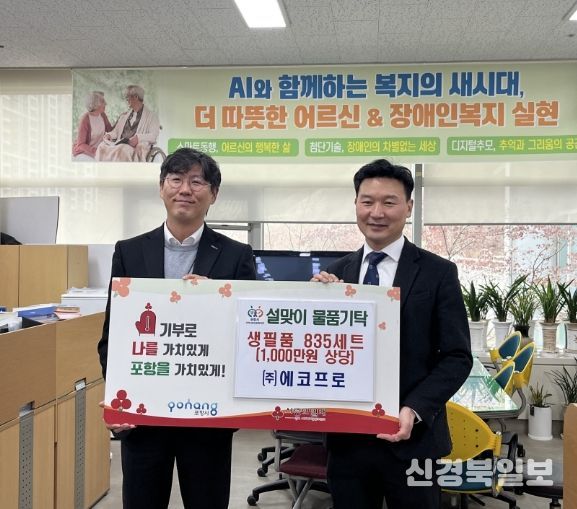 [ 신경북일보 ] 포항시는 10일 에코프로가 설 명절을 맞아 지역사회 취약 어르신들을 돕기 위해 1,000만 원 상당의 생필품을 기탁했다고 밝혔다.