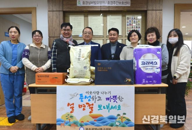 [ 신경북일보 ] 광주 북구의회가 병오년 설을 맞아 10일 관내 사회복지시설을 방문해 위문품을 전달하며 지역 주민과 따뜻한 정을 나눴다.