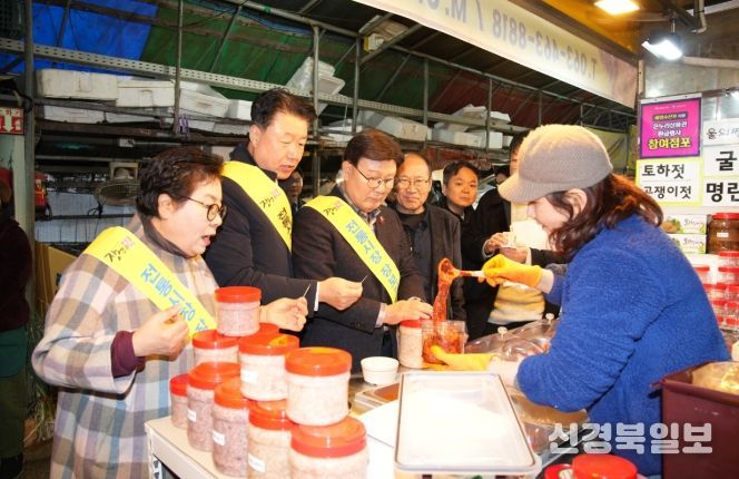 [ 신경북일보 ] 전북특별자치도의회는 설 명절을 앞둔 10일 군산 주공시장을 방문해 전통시장 상인들을 응원하며, 시장 활성화를 위한 장보기 행사와 이용 캠페인을 진행했다.