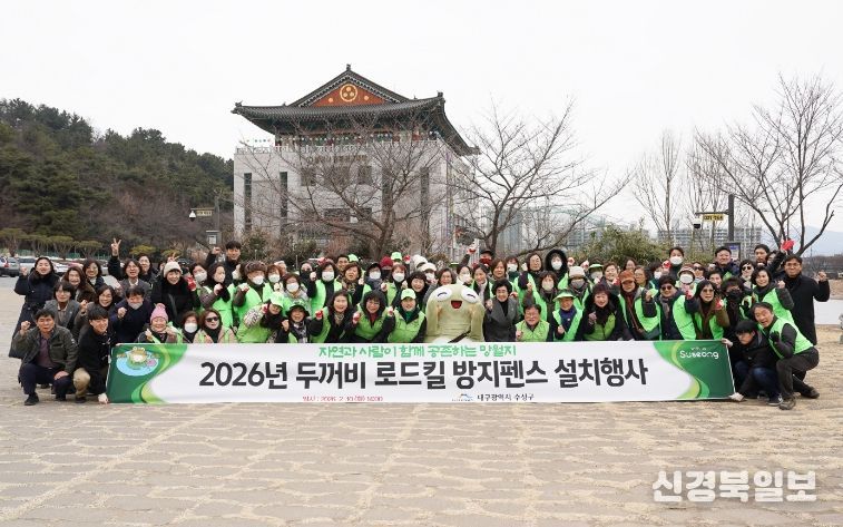 [ 신경북일보 ] 대구 수성구는 지난 10일 전국 최대 두꺼비 집단 산란지인 욱수동 망월지 일대에서 ‘두꺼비 로드킬 방지 펜스 설치’ 행사를 실시했다.
