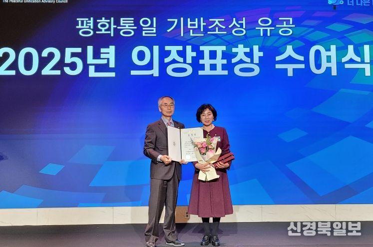 [ 신경북일보 ] 민주평화통일자문회의 예천군협의회(회장 조경섭) 김재숙 자문위원은 11일 안동 스탠포드호텔에서 개최된 ‘2025년 민주평화통일자문회의 의장 표창 수여식’에서 의장(대통령) 표창을 수상했다.