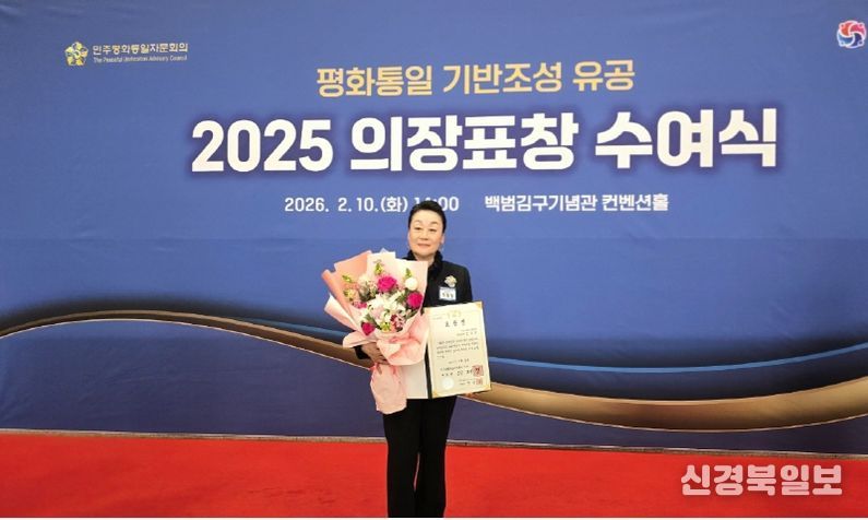 [ 신경북일보 ] 정임행 민주평화통일자문회의 강남구협의회 차석(㈜파모소 회장)이 2026년 2월 10일 오후 2시 서울 용산구 백범김구기념관 컨벤션홀에서 개최된 민주평화통일자문회의 2025 의장표창 수여식(서울지역)에서 민주평화통일자문회의 의장 대통령 표창을 수상했다.