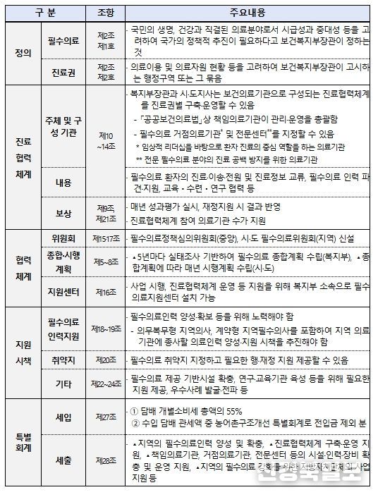 지역필수의료법의 주요 내용은 다음과 같다.